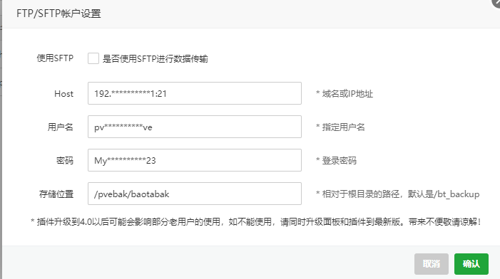 也可以不指定FTP的专用文件夹,可以手动在存储空间里面设置备份路径即可。